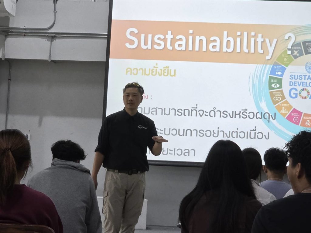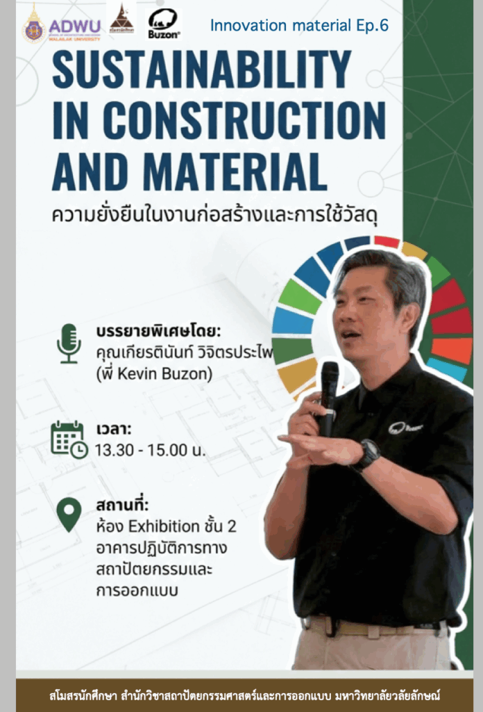 The session featured Mr. Kiatnunt Wichitprapai (Kevin Buzon), a specialist in construction materials and innovation, who shared valuable insights and real-world experience from the industry. His talk highlighted the importance of responsible material selection across the entire lifecycle, from production and installation to usage and end-of-life management.